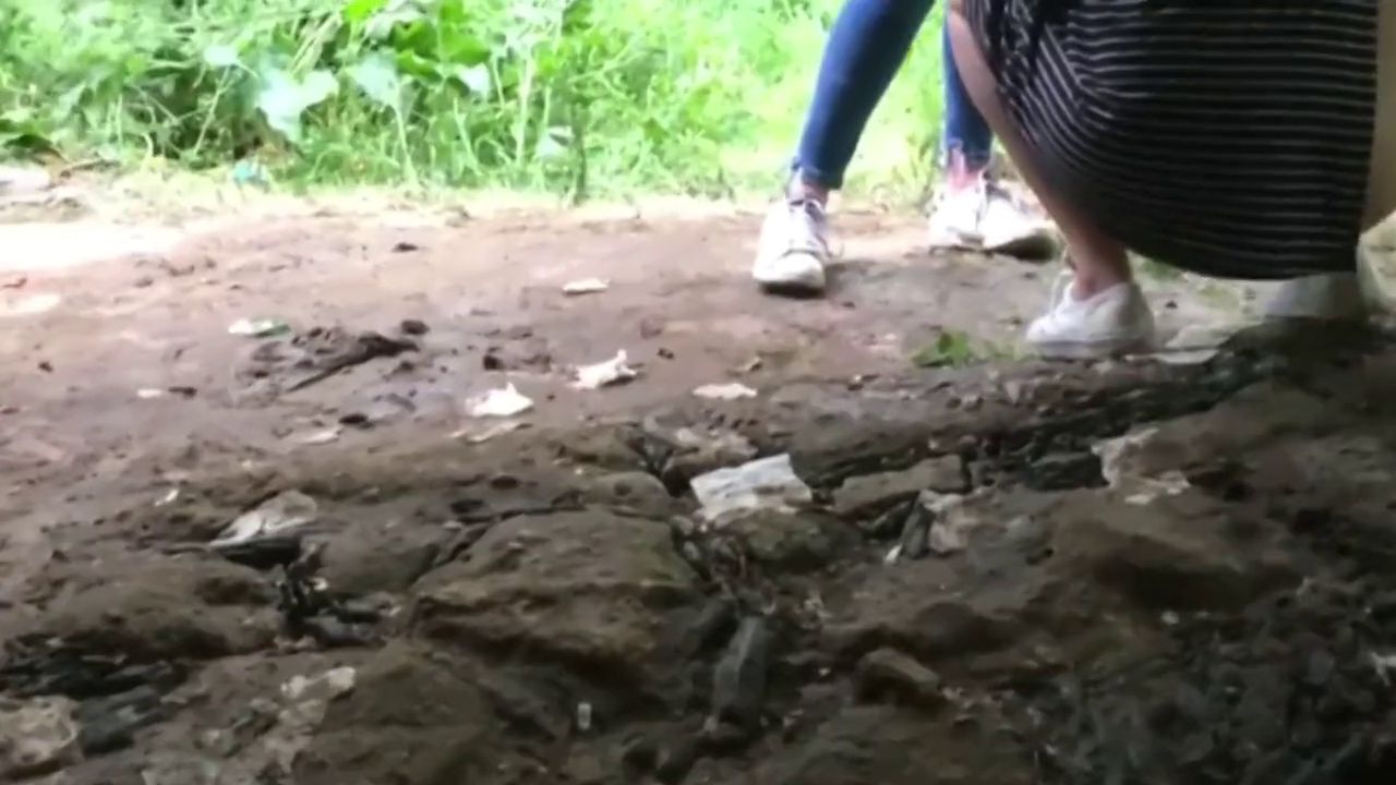 Description: When she starts to pee it will be like a waterfall is coming out of her pussy and that explains the need to urgently urinate out on the street. Her friend is hiding her with a jacket but voyeur is standing on the side and recording everything.