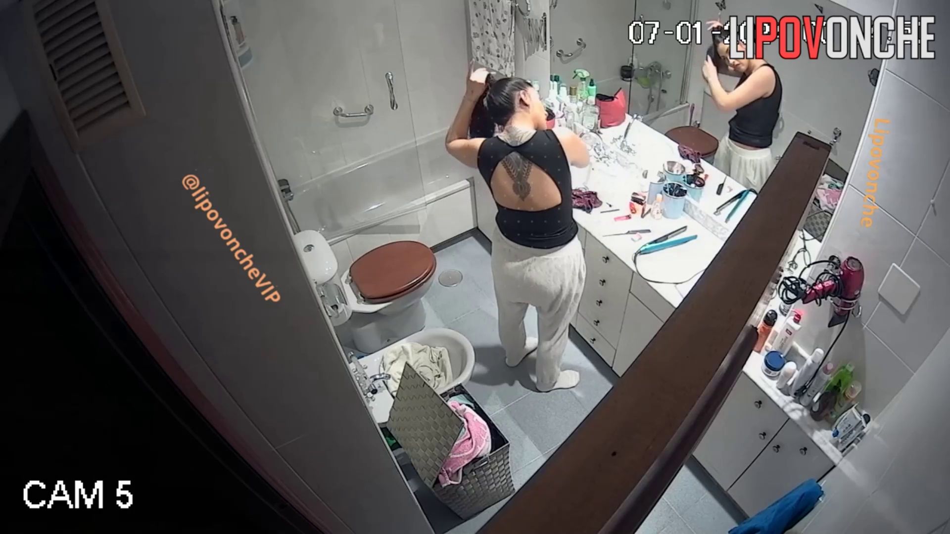 Description: Hidden camera was positioned to frontally film it caught this delicious babe undressing and doing her routines while at it. Her naked body looks very good, fuckable even.